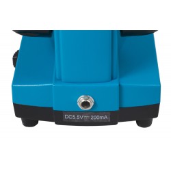 Telo mikroskopa napravljeno je od čvrste plastike - zato je mikroskop tako lagan, prenosiv i istovremeno pouzdan. Glava nagnuta na 45 ° omogućava posmatranje iz najudobnijeg položaja. Mikroskop se može napajati strujom iz domaćinstva, kao i baterijama.