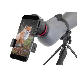 Podelite svoja otkrića sa drugima! Uz priloženi adapter za pametni telefon, možete fotografisati i snimati video direktno kroz teleskop. Spoting teleskop se može montirati na bilo koji stativ sa standardnim 1/4" navojem koji zadovoljava zahteve nosivosti. U paketu već dolaze metalni stoni stativ, adapter za telefon, torbica za nošenje, zaštitni poklopci za objektiv i okular, kao i krpica za čišćenje optike.